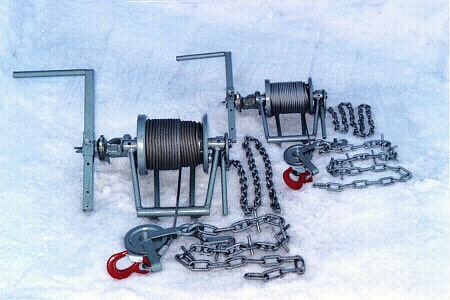 MOMENT K2 håndvinsjer har en skikkelig lang wire på 25 meter, som er nok til de fleste løft og slep (du kan også få 40 m). Som festeunderlag brukes stolper eller trær, hvor vinsjen i løpet av sekunder spennes fast ved hjelp av en eksenterspenner. Wiremanøvreringskjeden med pigger får et sikkert tak i treet og styrer belastningsretningen slik at den blir riktig for vinsjen. Selv kompliserte flytte- og løfteoperasjoner kan du utføre i en håndvending.